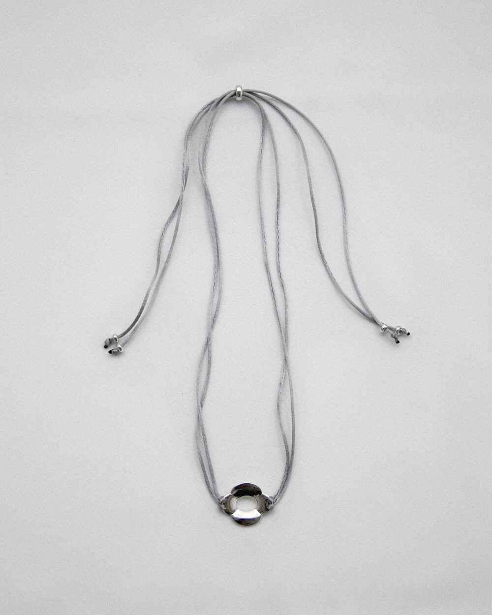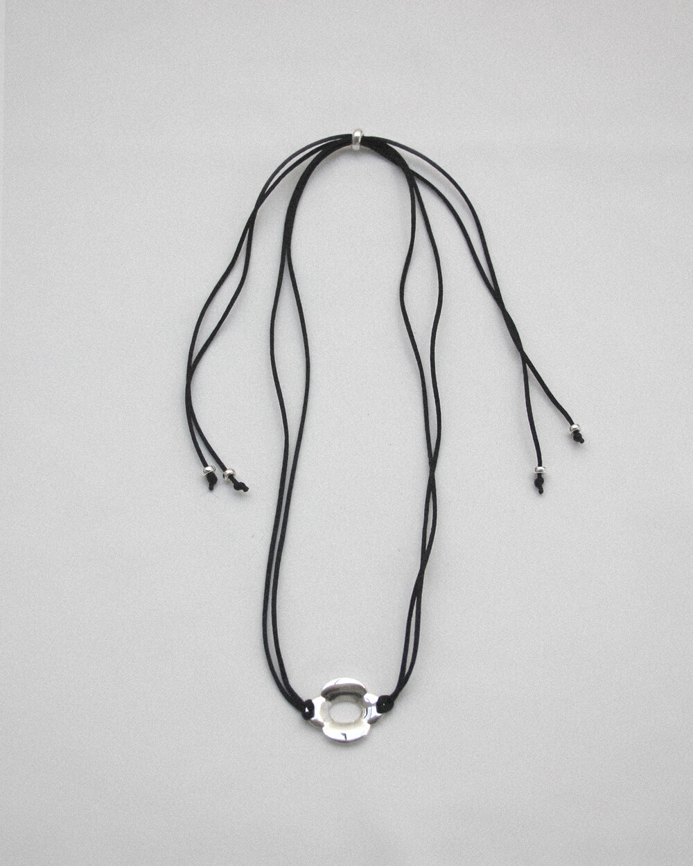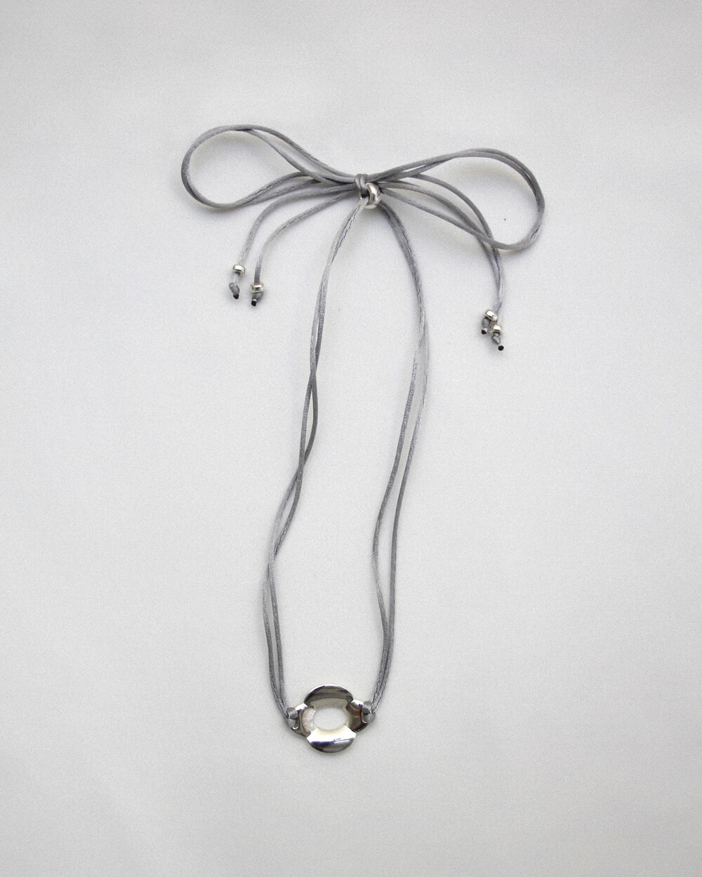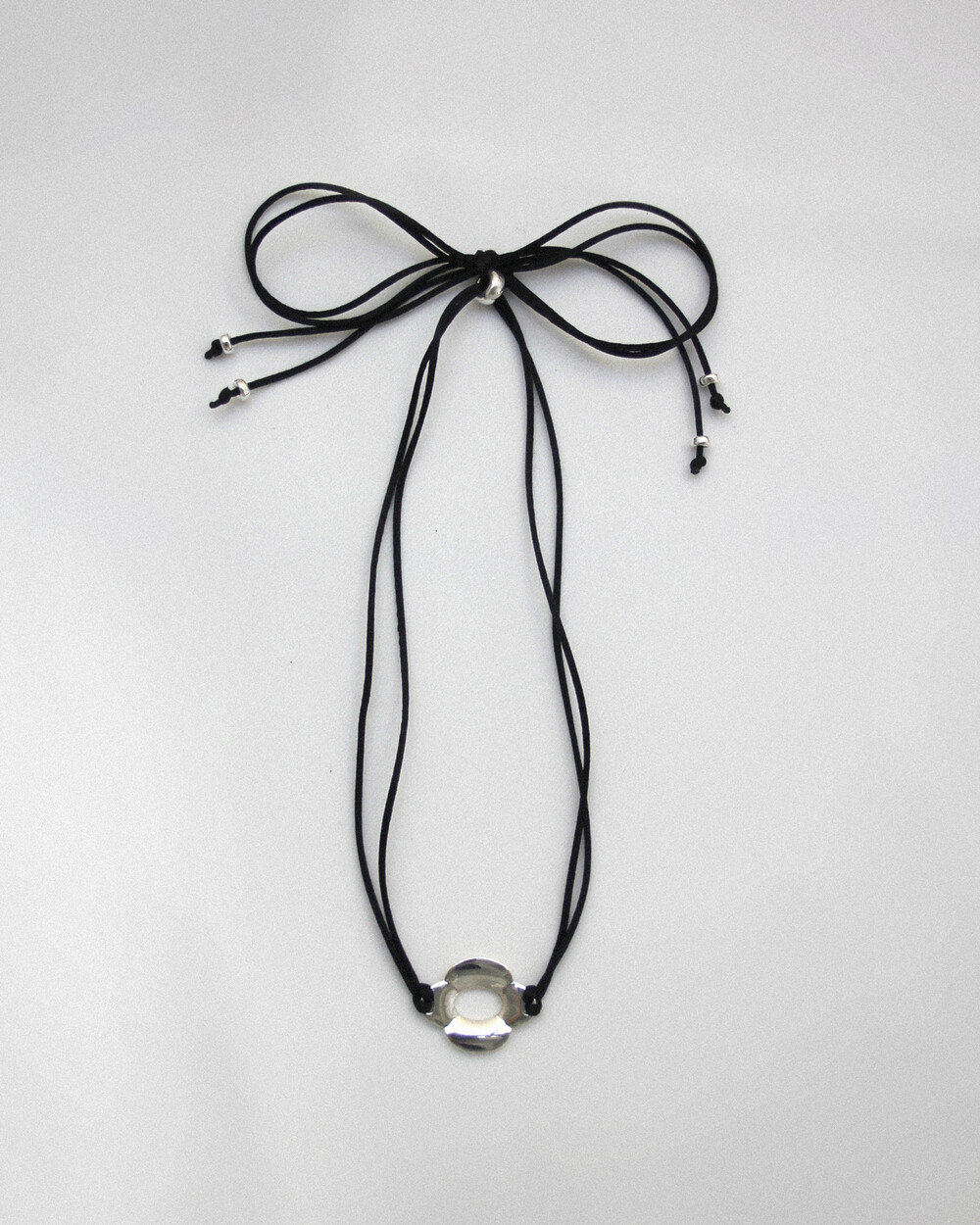 광택감 있는 두 가지 색상의 끈을 매치하여 초커스타일로 착용하실 수 있는 목걸이입니다.