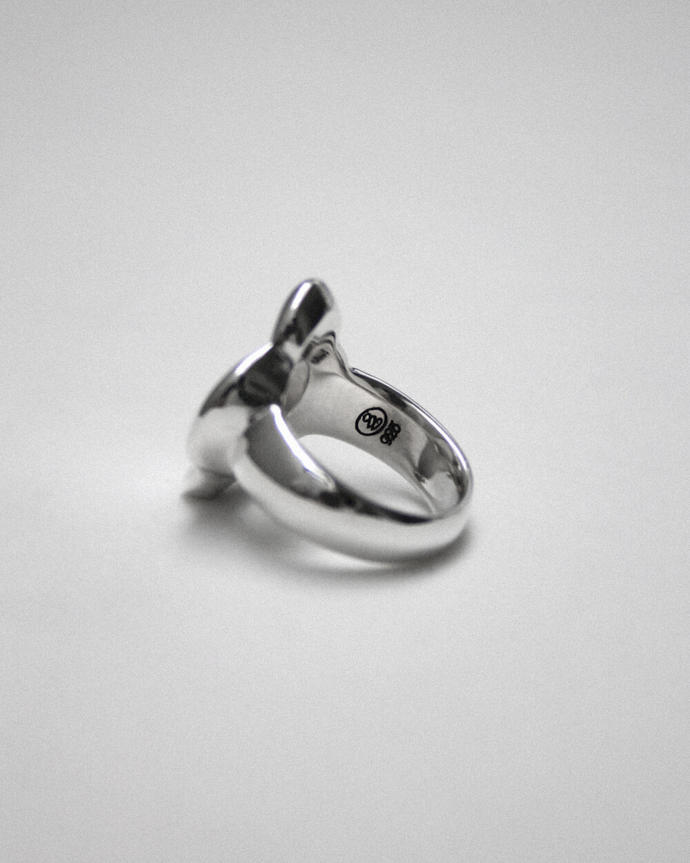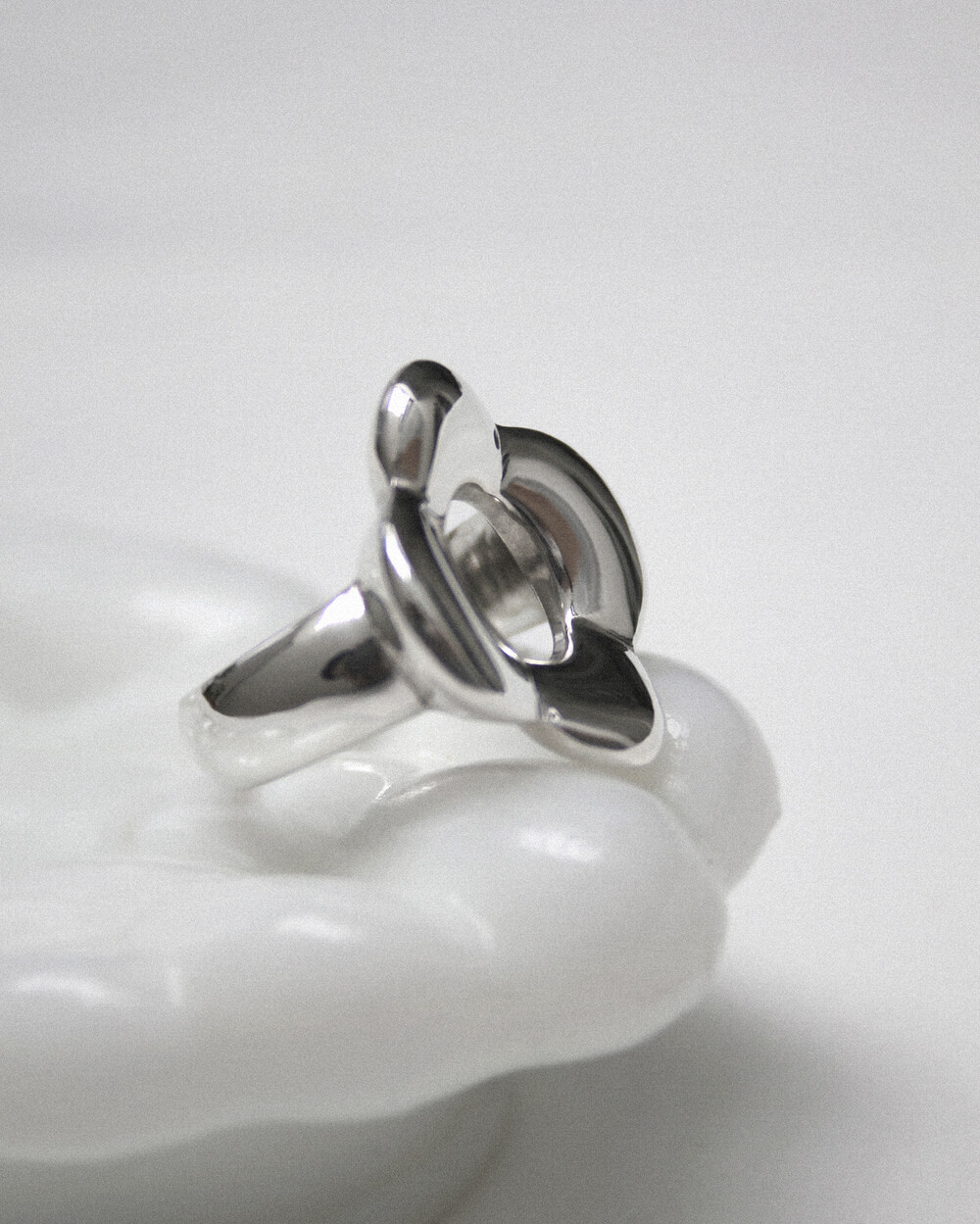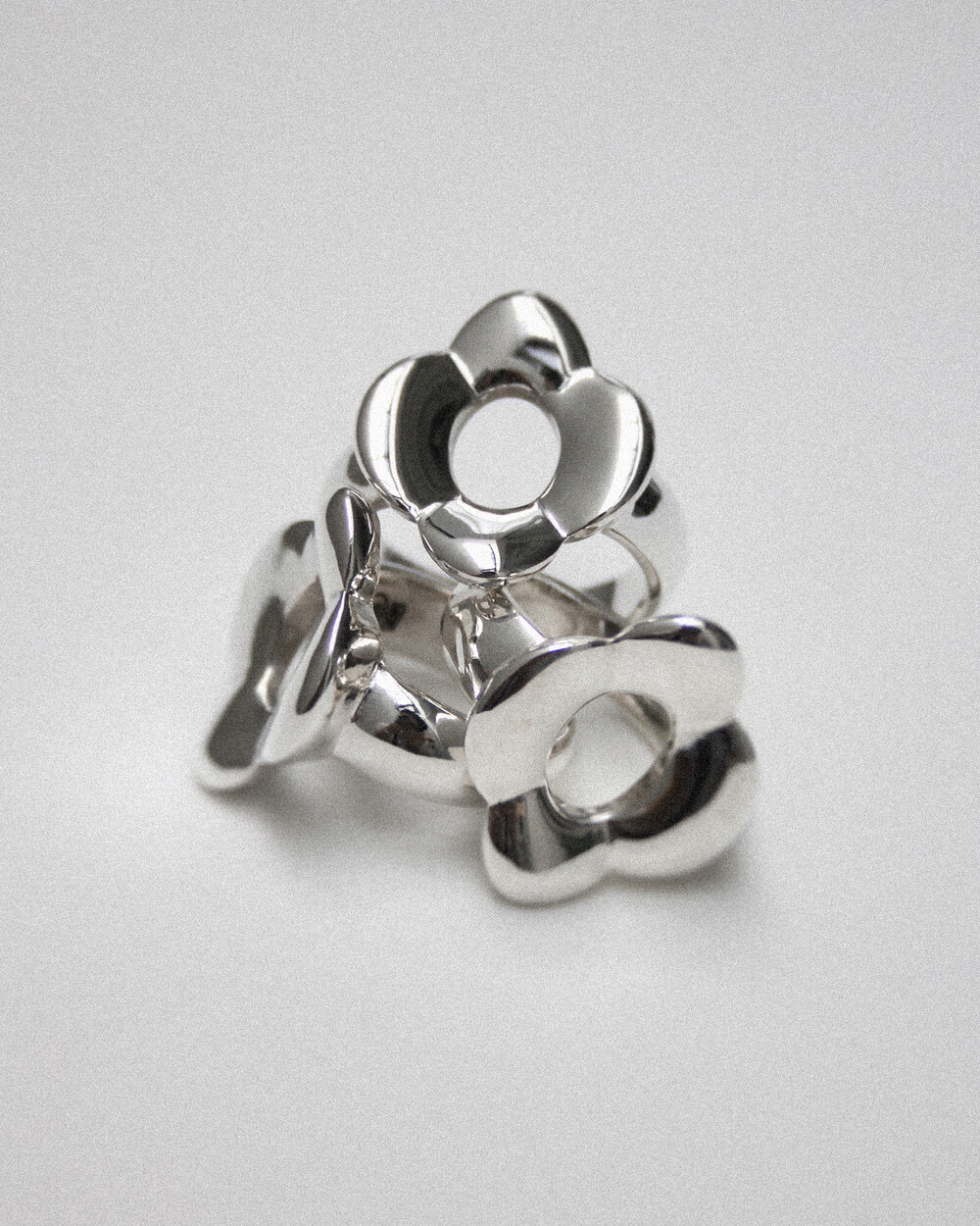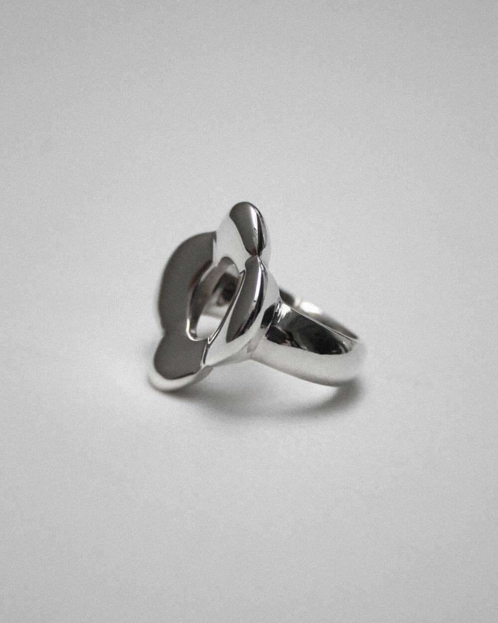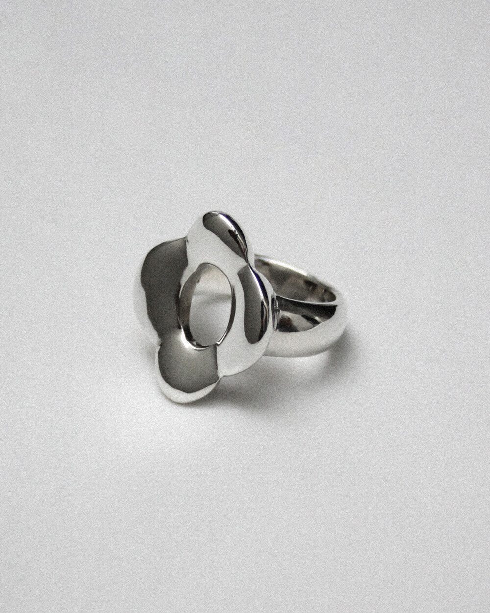 클로버 모티프를 입체적으로 풀어낸 볼드한 디자인의 반지입니다.