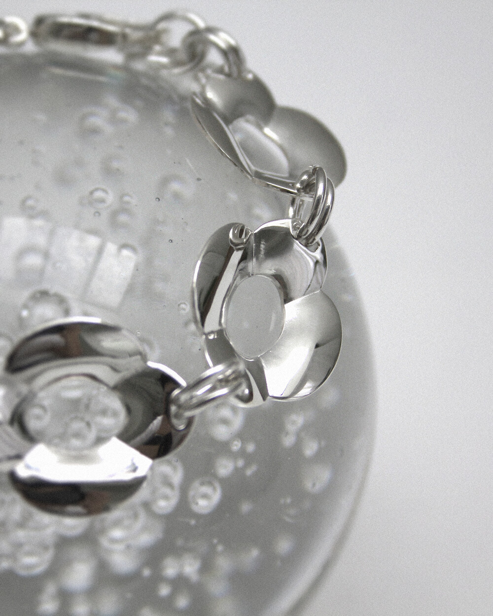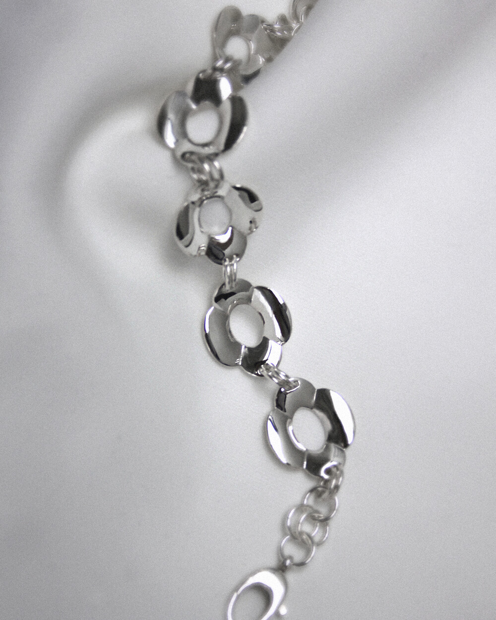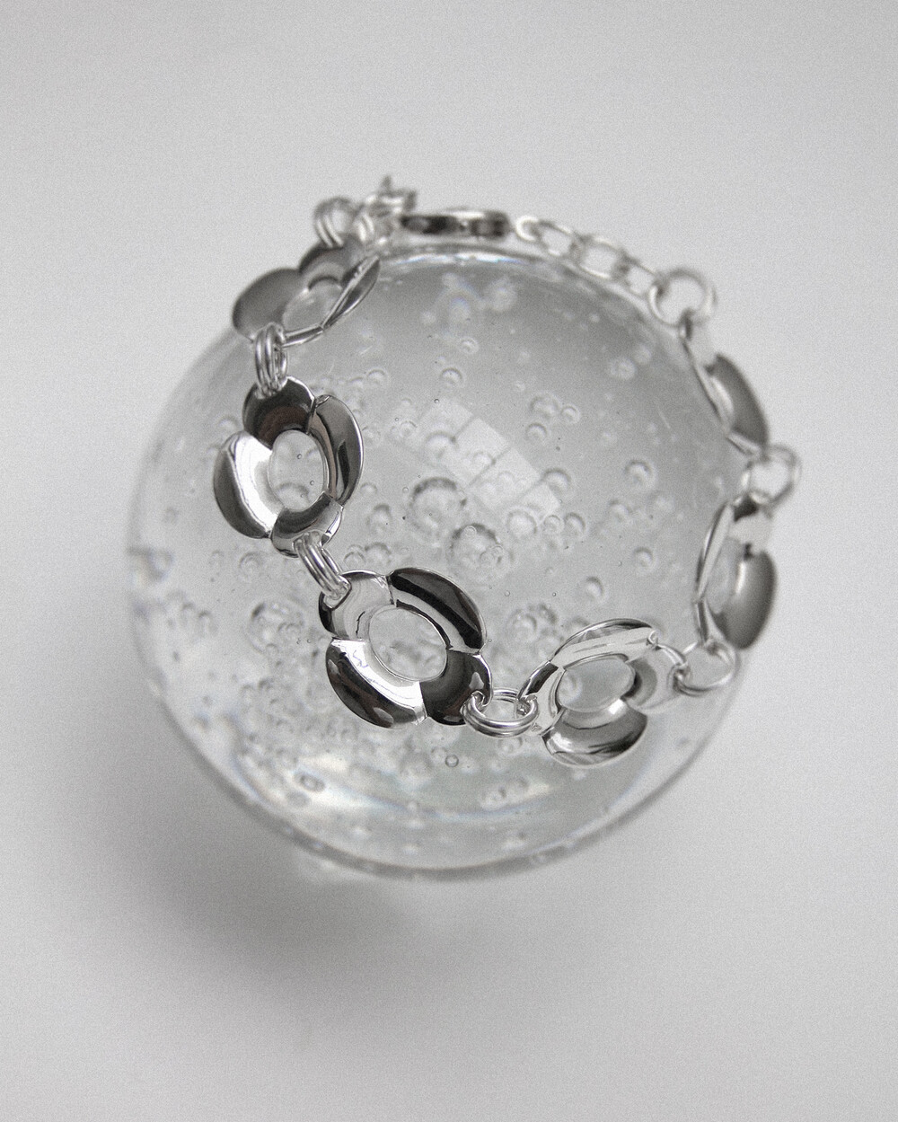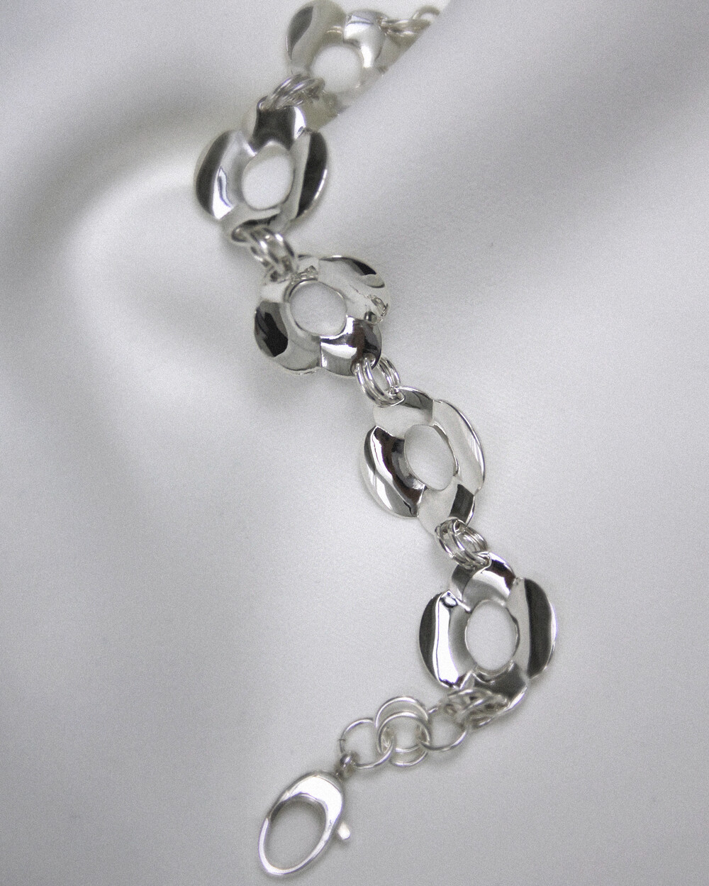 클로버 모티프가 반복되며 연결된 디자인의 팔찌입니다.