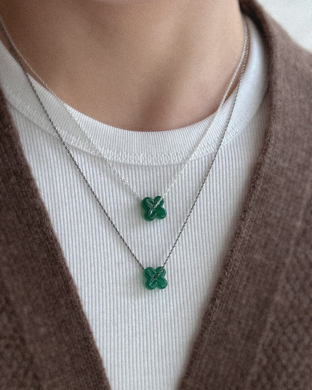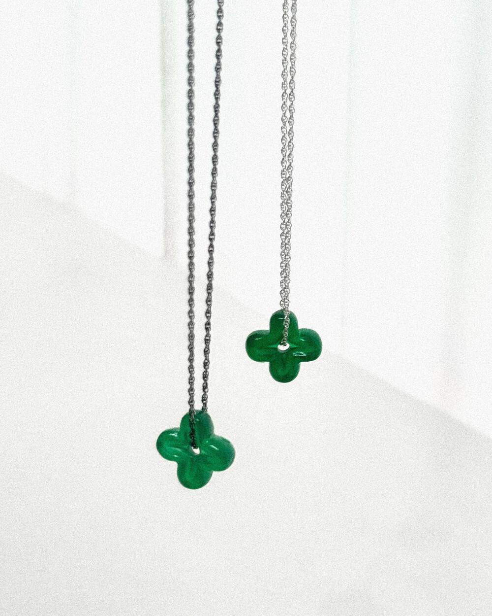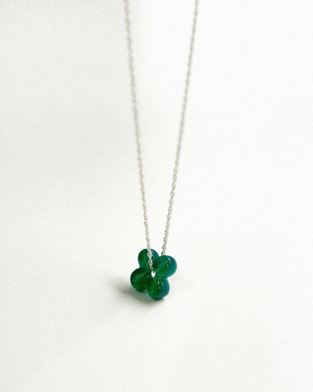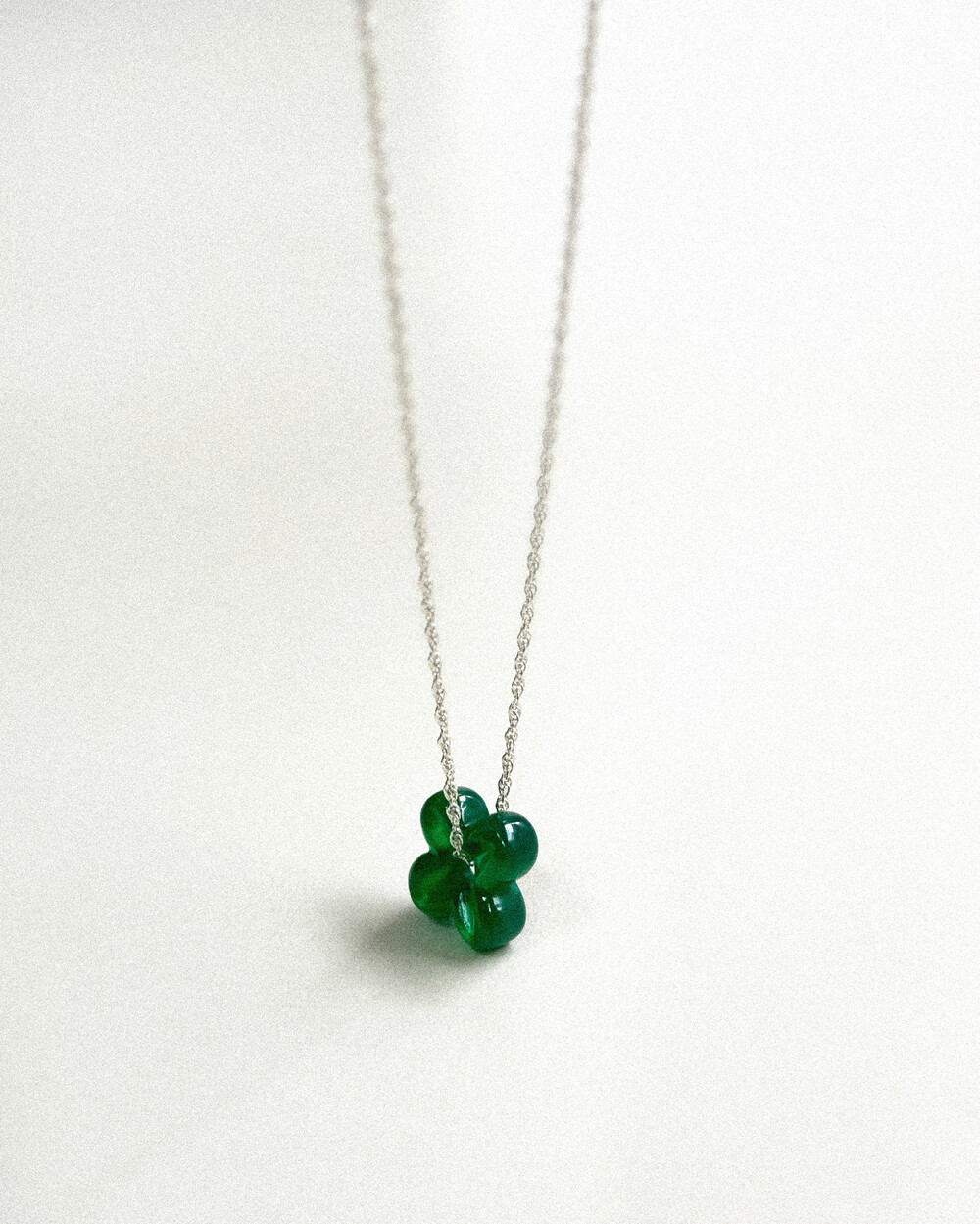 행운을 상징하는 네잎 클로버 모티프의 원석 팬던트 목걸이입니다.
