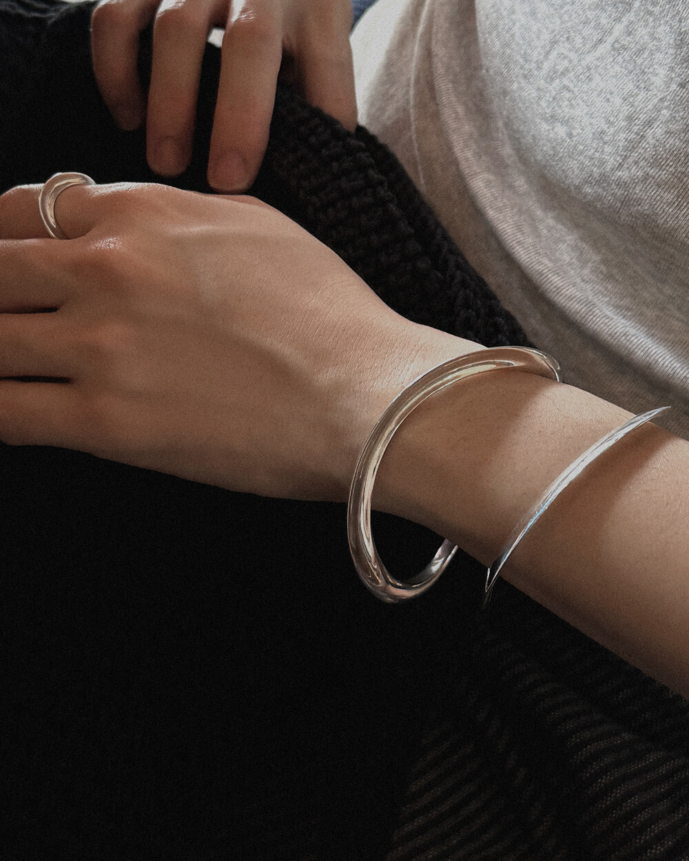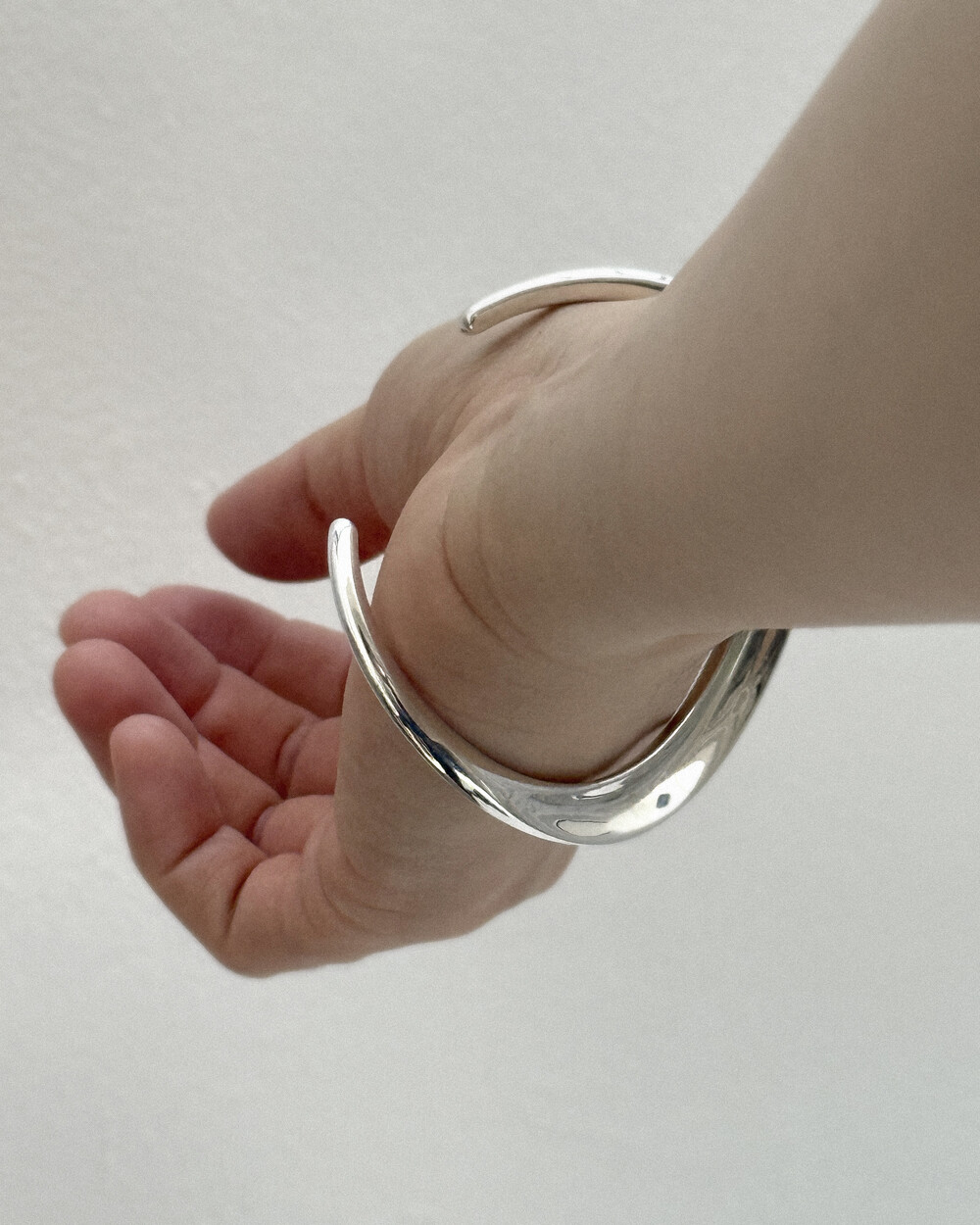 착용 방향에 따라 팔에 닿는 곡선과 시각적 인상이 달라져, 하나의 뱅글로 다양한 분위기를 연출할 수 있습니다.