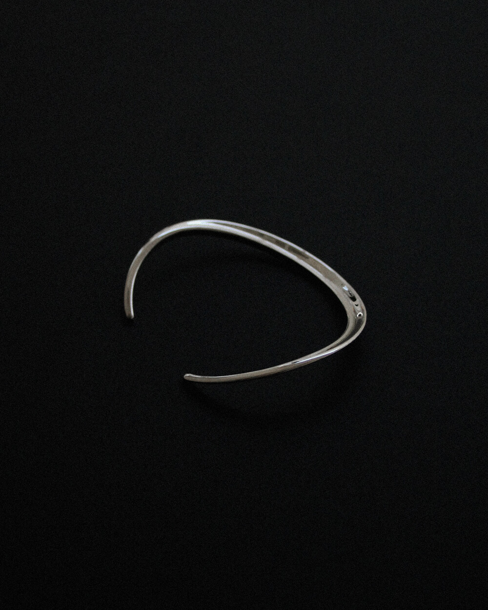 자연스럽게 흐르는 형태의, 한쪽이 트여 있는 타원형 뱅글입니다.