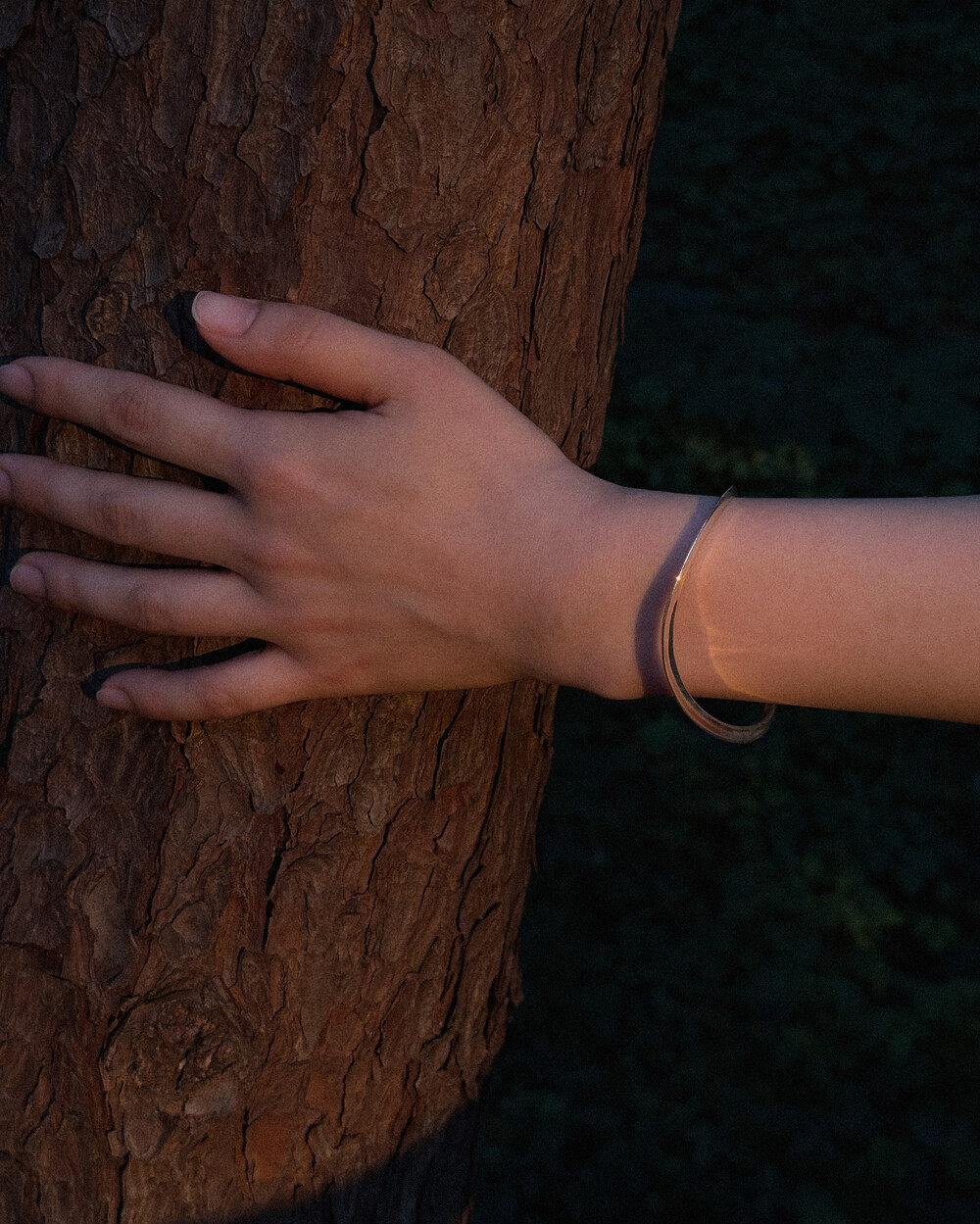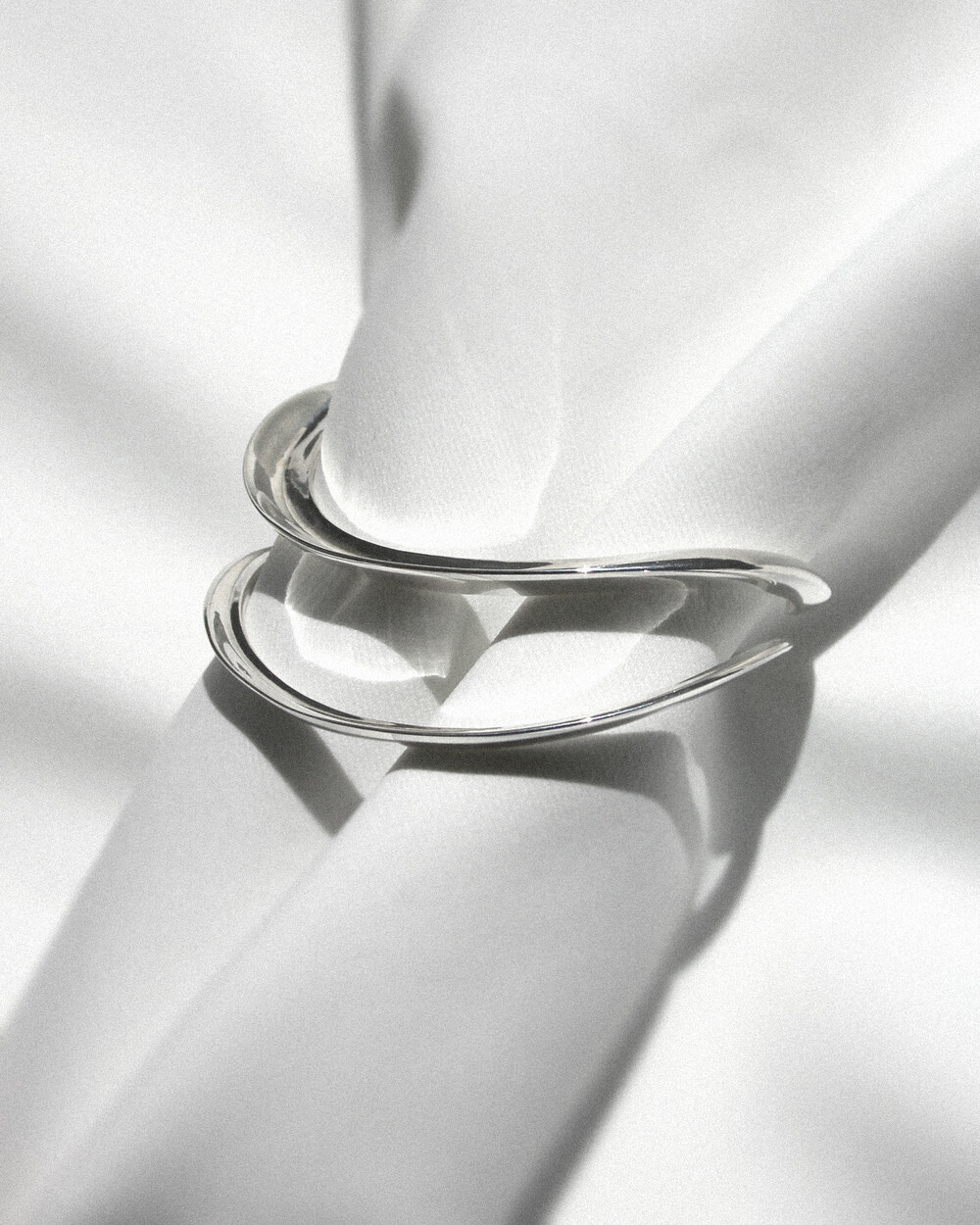 또한 Curved Line Slim Cuff 두 개를 겹쳐 착용하면 뱅글의 곡선이 섬세하게 겹쳐지며 입체적인 실루엣을 연출할 수 있습니다.
