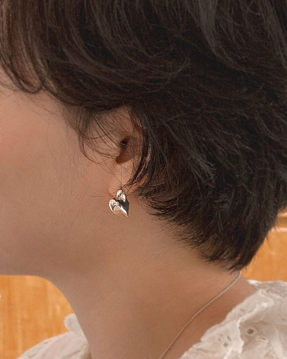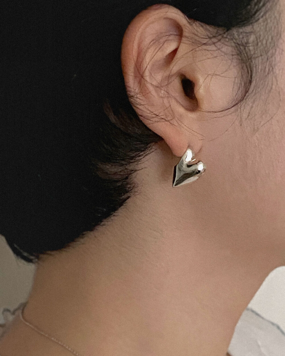 착용 시, 정면과 측면에서 조금씩 다른 하트의 형태로 보이는 것이 특징입니다.