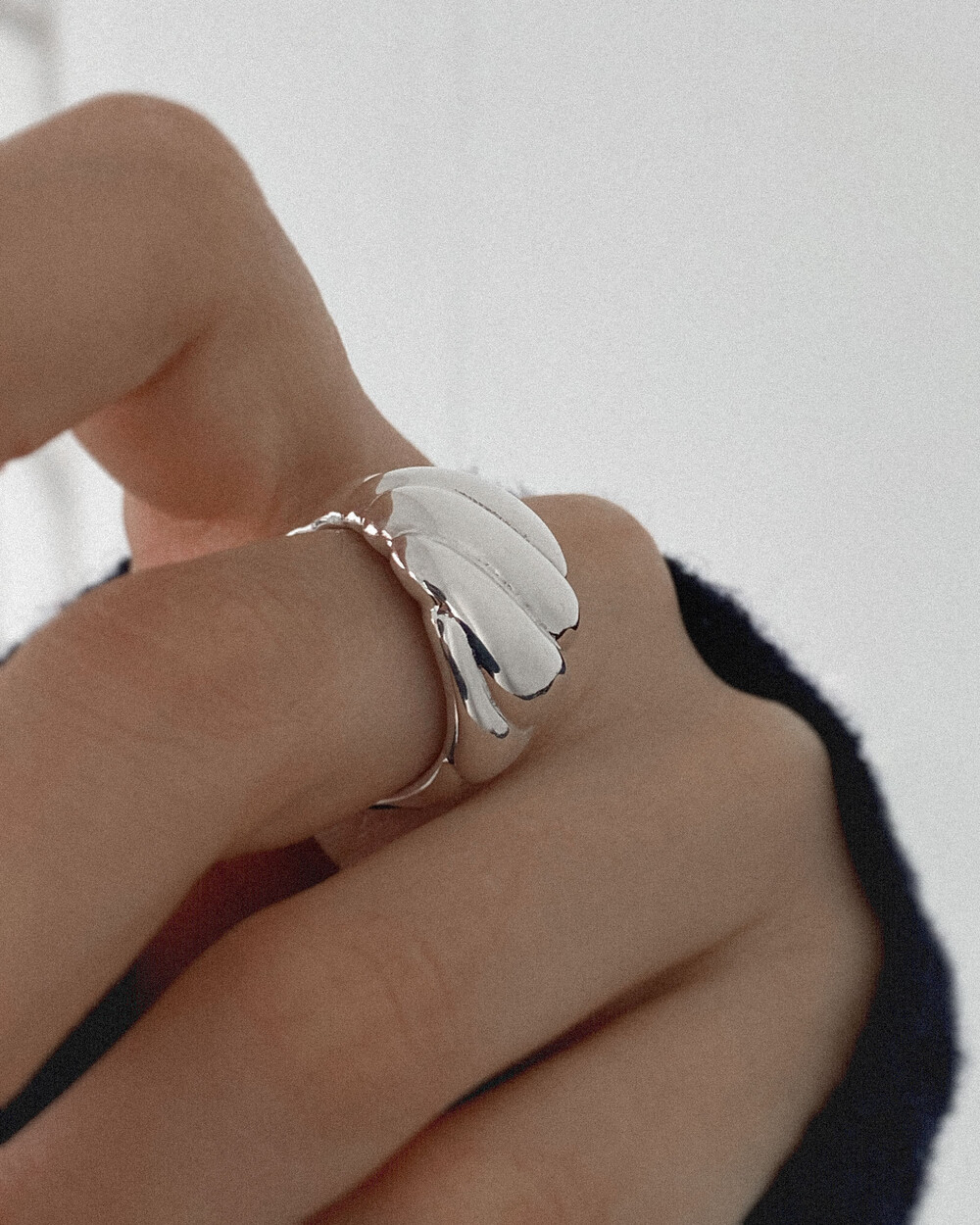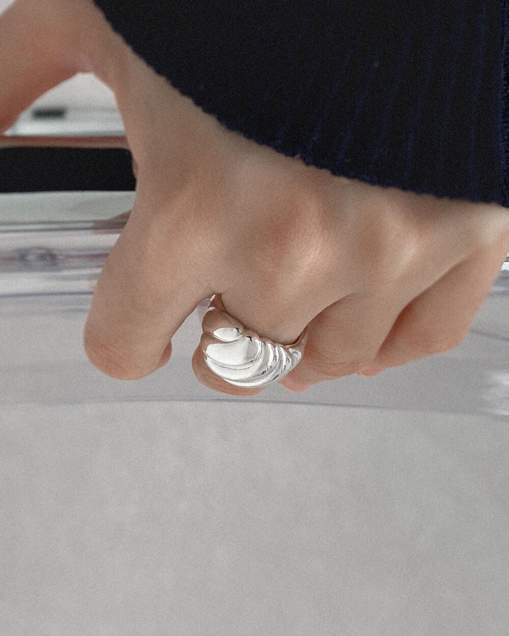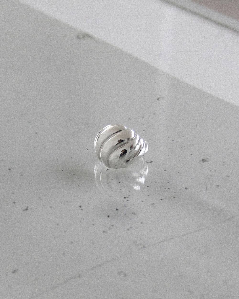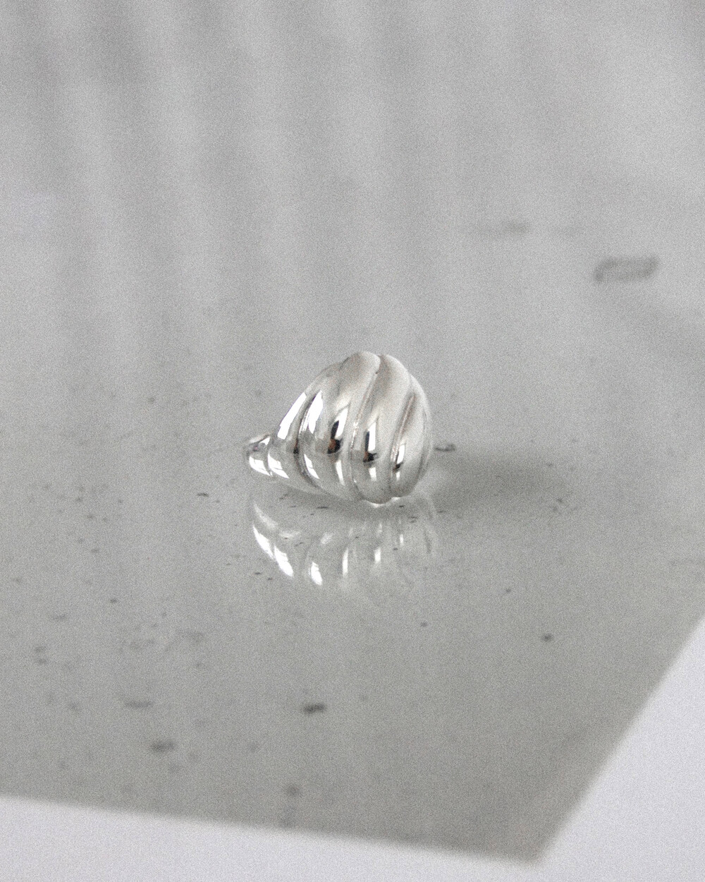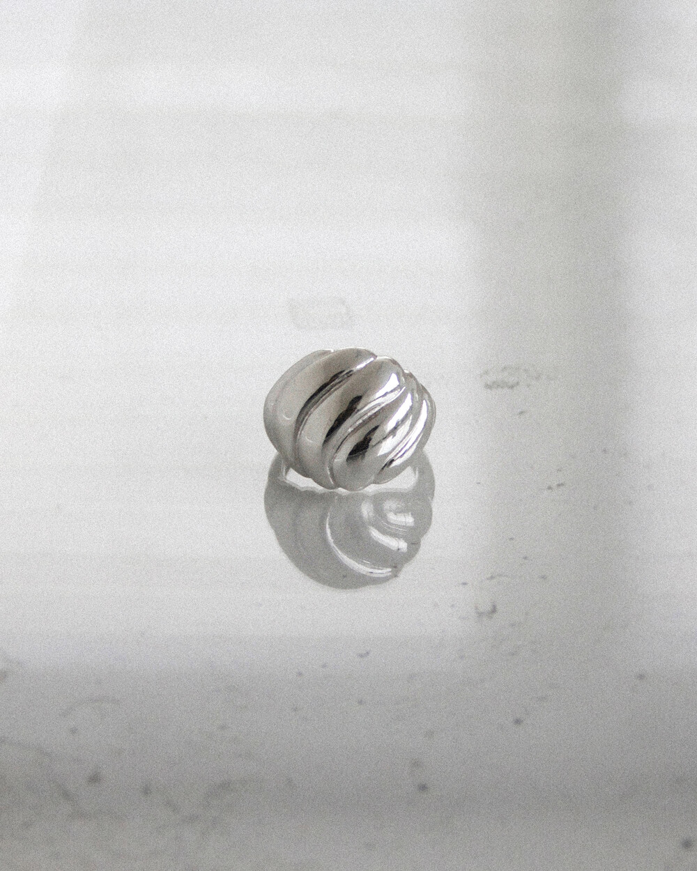소용돌이 모양이 반구에 입체적으로 새겨진 볼드한 디자인의 반지입니다.